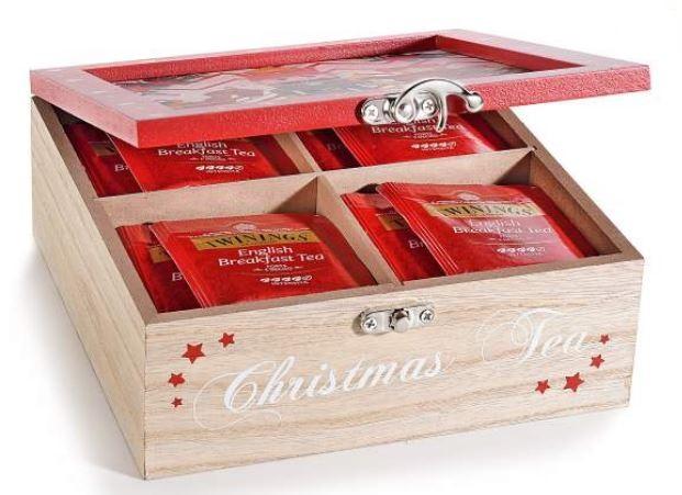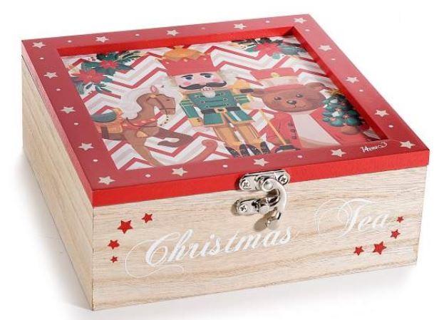 Boîtes en bois naturel ornées de décorations de Noël avec 4 compartiments.