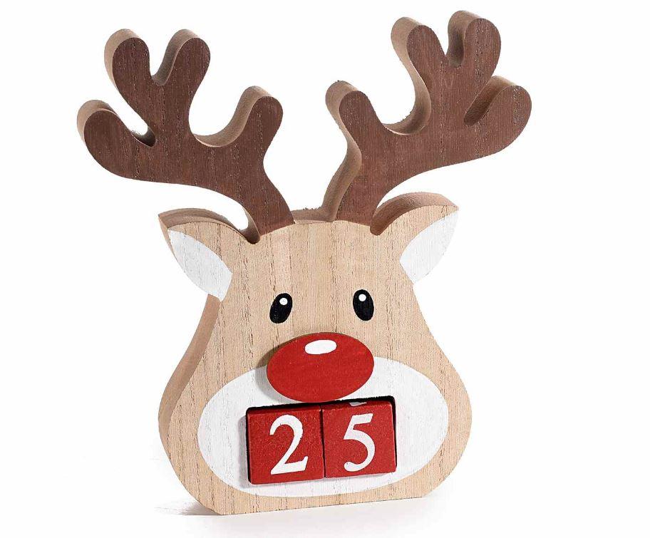Calendrier perpétuel de renne de Noël en bois plein avec des dés rouges et blancs amovibles en bois, idéale pour offrir de la joie et du bonheur à toute votre famille le matin en établissant le décompte jusqu'au jour J.