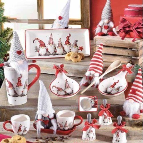 Plat Gnomes de Noël en céramique, parfait pour la table du réveillon. Lavable en machine et utilisable au micro-ondes.