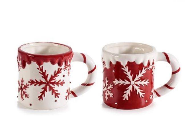 Tasses blanches de Noël avec poignée en céramique de couleur brillante et détails de flocons de neige en relief, idéale pour un parfait goûter. Lavable en machine et utilisable au micro-ondes.