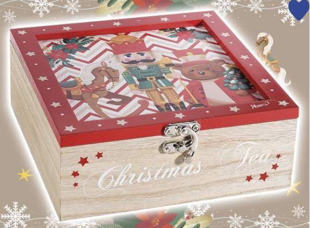 Boîtes en bois naturel ornées de décorations de Noël avec 4 compartiments.