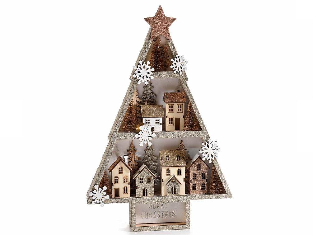 Décoration de Noël lumineuse 3D vintage en bois naturel.